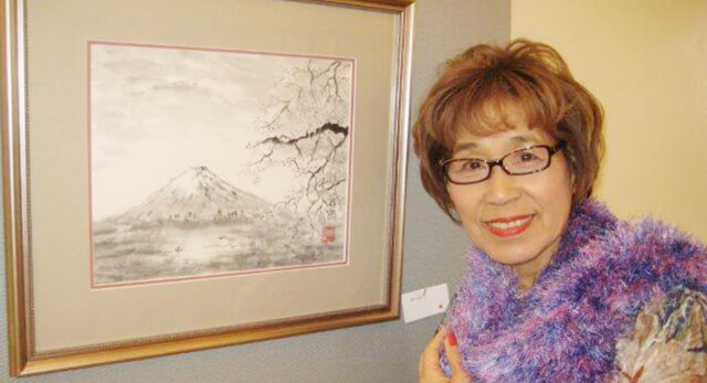 (写真)作品を前に大石慶子さん
